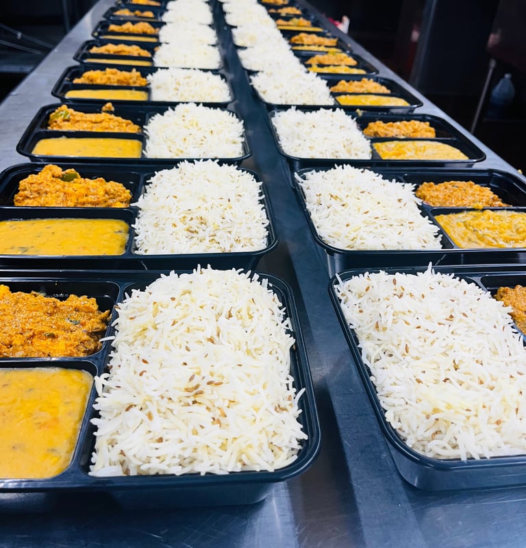 Enjoy freshly cooked and refrigerated meal plates with Curry, Rice, and Dal Tadka, available at selected Farmers Markets.